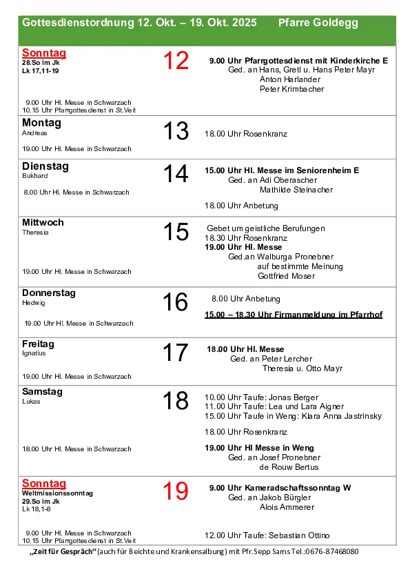 Hier finden Sie die Gottesdienstordnung der nächsten Woche.
